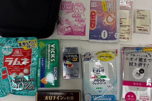 常備薬(整腸剤、風邪薬、胃薬、解熱剤など)・虫除けスプレー・軽めの日本食 |