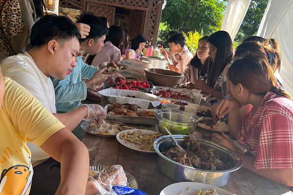 朝ごはんもみんなで準備、昨日のレチョンをアレンジしたり、大量の料理も手慣れたもんです。さすが大家族で育っているなぁと感心しました。