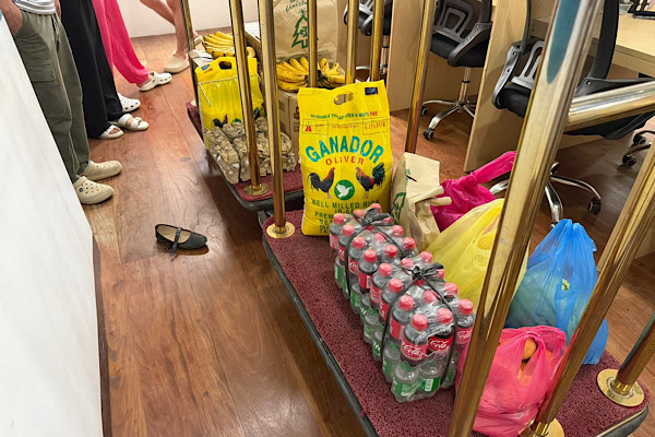 たくさんの荷物、食料を準備、ジプニーや車に詰め込みみんなで出発です。