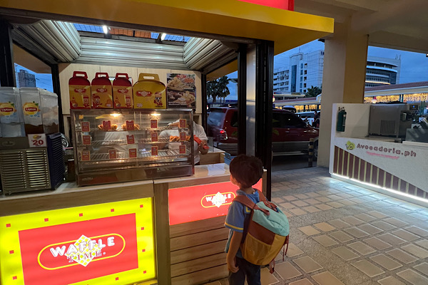 息子も恥ずかしいのと言葉がわからないので私にベッタリでしたが、おいしいおやつの店をみつけ、はじめは一緒に注文し、次に自分で注文+隣にわたし。一人で注文。と一人でもできることが分かれば、もう余裕です。毎日のようにコインを握って買いにいってます。